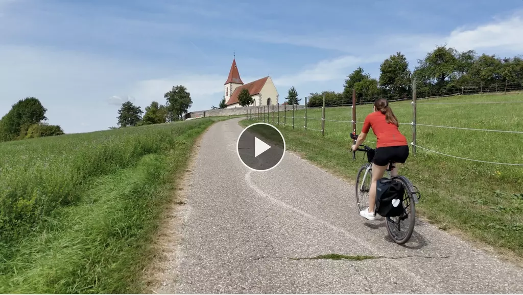 Wir sind gespannt auf die Ulrichskirchen, die an der Strecke liegen, und hoffen auf viele Fotomotive: Reinhold, der Fotograf, hat seine Kamera immer griffbereit.