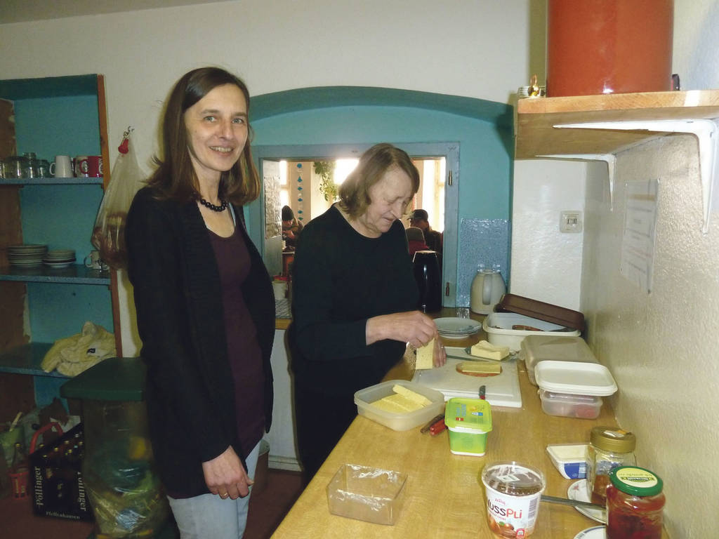 Obdachlose und Bedürftige erhalten in der Wärmestube am Crescentiaplatz für ein paar Cent einen heißen Kaffee oder ein Erfrischungsgetränk. Tee und belegte Brote werden kostenfrei verteilt. Rund 120 Stammgäste kommen regelmäßig. Etwa ab Mitte des Monats steigt die Zahl der Besucher deutlich an, beobachten die Helferinnen. Über 20 ehrenamtliche Mitarbeiter zwischen 25 und Anfang 70 Jahren engagieren sich in ihrer Freizeit unentgeltlich in der Wärmestube, in dem sie den Thekendienst übernehmen, also Kaffee und Tee kochen sowie Brötchen schmieren.